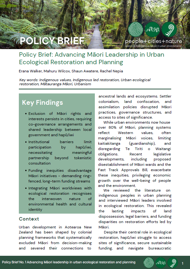 Policy Brief: Advancing Māori Leadership in Urban Restoration